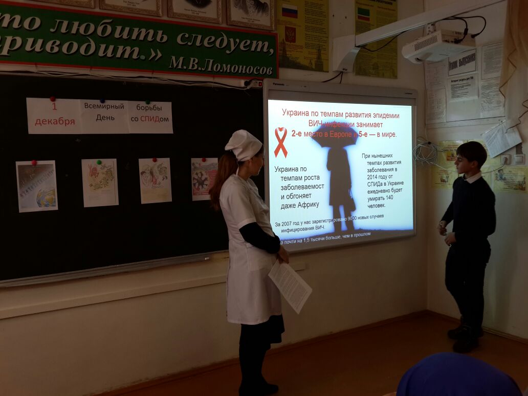 01.12.20141 декабря ежегодно на международном уровне проводится Всемирный день борьбы со СПИДом.. Этот день – возможность для всех людей мира возобновить свою приверженность делу борьбы со СПИДом, принять участие в акциях, направленных на информирование населения по вопросам ВИЧ-инфекции, мотивацию на здоровый образ жизни и безопасное в отношении инфицирования ВИЧ поведение. В рамках акции «Всемирного дня борьбы со СПИДом» в школе было проведено мероприятие «Наркомания и СПИД» в целях повышения знаний по профилактике ВИЧ/СПИД-инфекции, а также формирования подрастающего поколения системы знаний, умения и навыков здорового образа жизни. Школьная медсестра Мазаева Разет рассказала об истории появления болезни, о её последствиях.