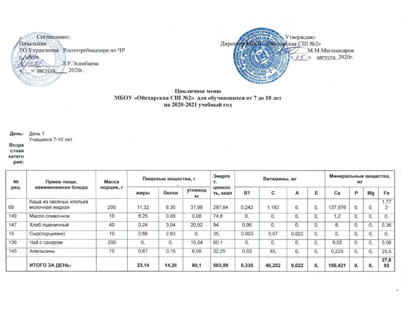 Меню горячего питания