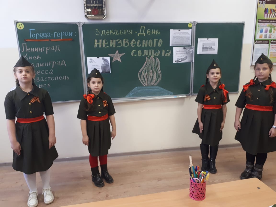 В этот день в школе прошел Всероссийский урок «Имя твое неизвестно, подвиг твой бессмертен» в рамках празднования 75-летия окончания Второй мировой войны и мероприятий Г о д а памяти и славы 2020.