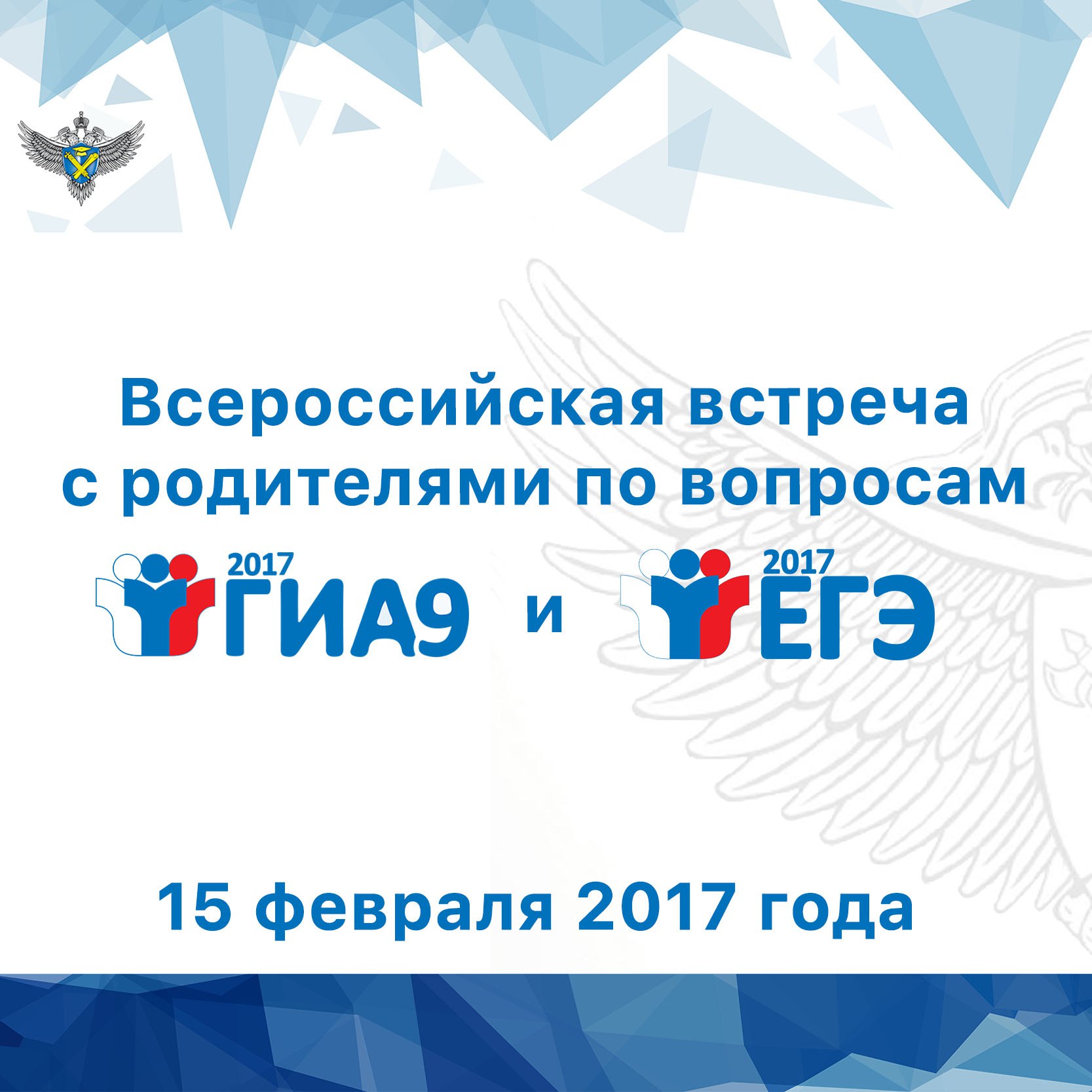 20.01.201715 февраля руководитель Федеральной службы по надзору в сфере образования и науки Сергей Кравцов проведет Всероссийскую встречу с родителями по вопросам проведения государственной итоговой аттестации по программам основного общего и среднего общего образования в 2017 году.
