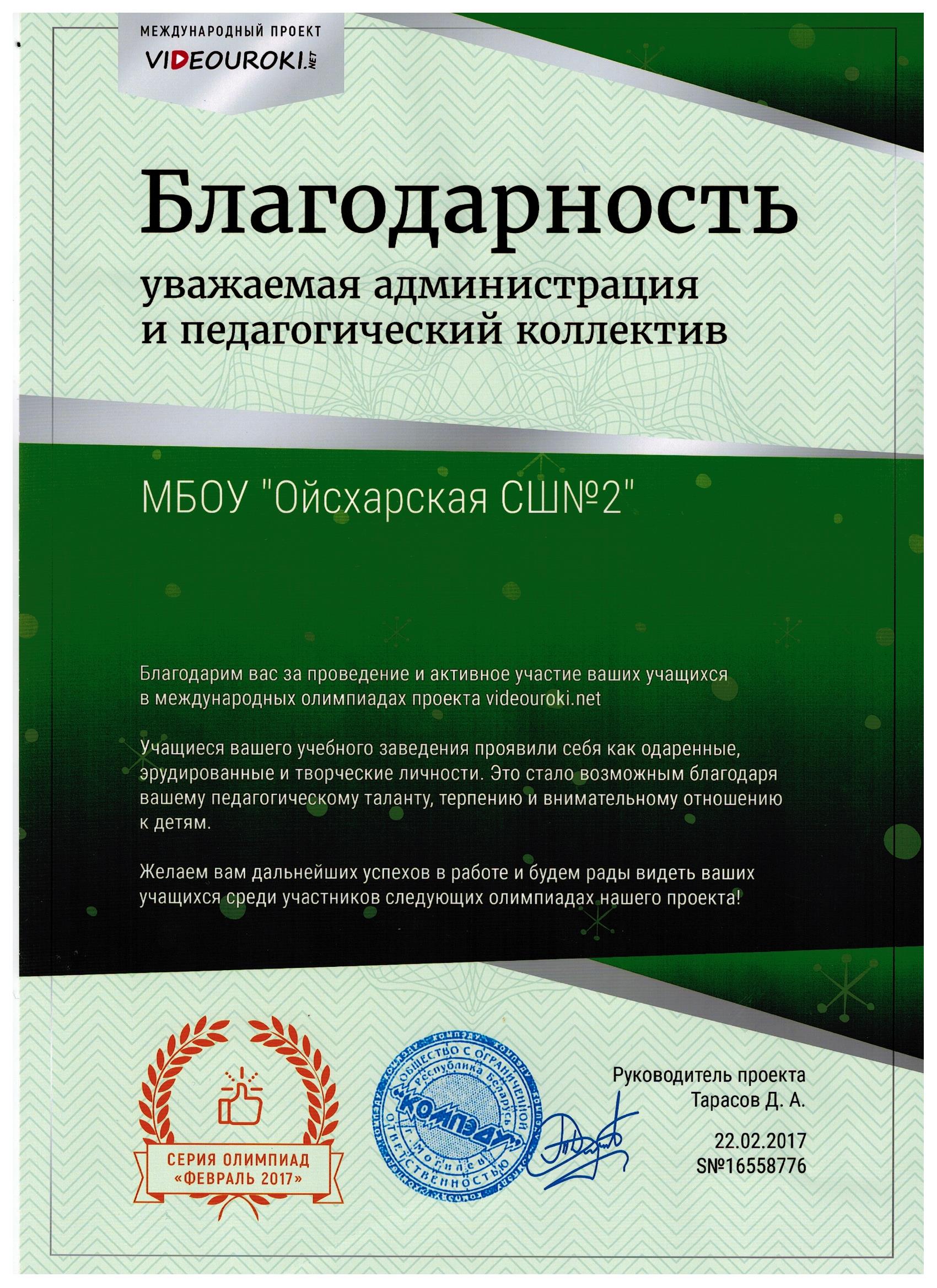 Благодарственная грамота