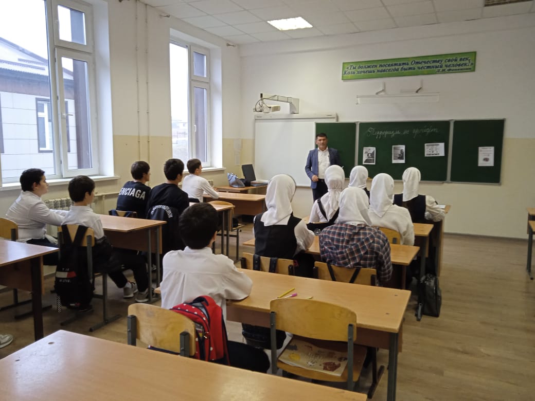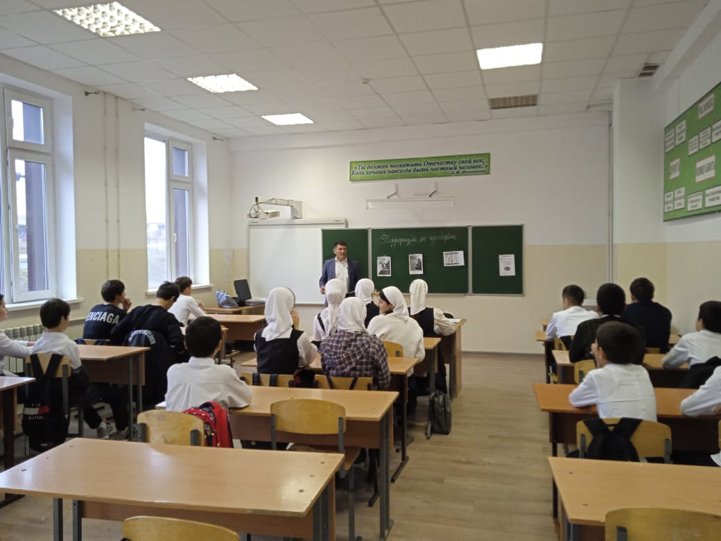 Учитель ОБЖ Гагаев Х.И. в 7-8 классах провел беседу на тему "Терроризм не пройдёт".