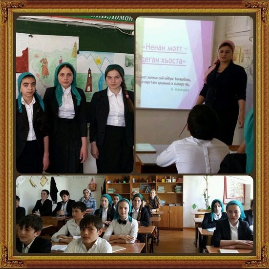 Халадова З.И. провела классный час в 7 В классе на тему: " Ненан мотт-деган хьоста".